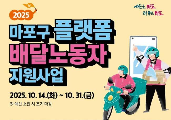 지원 대상은 마포구에 주민등록을 두고 마포직업소개소에 구직 등록한 플랫폼 배달노동자이며, 신청은 오는 31일까지 마포구청 고용협력과 방문을 통해 가능하다.