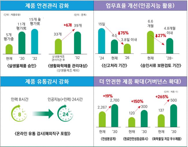 혁신 기반으로는 AI 전환과 협력을 강화한다. 정부 민원 처리 기간을 20% 이상 단축하는 AI 어시스턴트와 24시간 챗봇 민원 응대 체계를 도입하고, 전성분 공개와 화학물질 저감 우수제품 등 ‘더 안전한 제품’ 확산을 위한 인센티브를 확대한다.