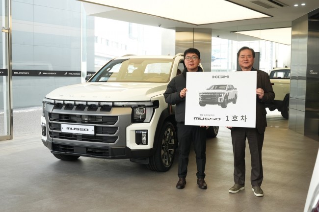 KGM은 지난 19일 KGM 익스피리언스 센터 일산에서 KGM 권교원 사업부문장(전무)을 비롯한 임직원들이 참석한 가운데 '무쏘' 1호차 전달식을 진행했다.