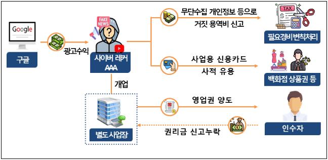 유형 1인 ‘악성 사이버 레커’는 타인을 비방·조롱하는 콘텐츠로 수익을 올리면서 구글 외환수익과 국내 광고·후원금 등을 장부에서 누락한 사례가 확인됐다. 실제 용역이 없는데도 허위 세금계산서를 수취하거나 발급하고, 고소·고발 대응 비용과 벌과금까지 업무비용으로 계상한 정황도 드러났다.