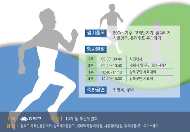 강북구(구청장 이순희)는 오는 10월 18일(토) 오전 9시 강북구민운동장에서 '2025 강북구민 한마음 체육대회'를 개최한다고 밝혔다.