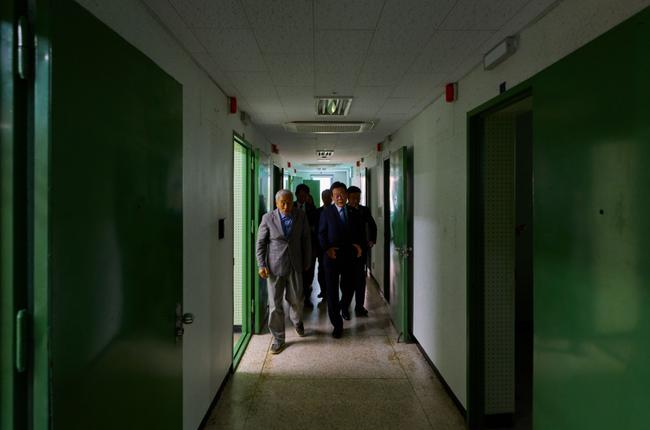 이재명 대통령이 21일 서울 용산구 민주화운동기념관(옛 남영동 대공분실)을 찾아 조사실 등을 둘러보고 있다.