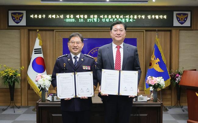 인천 미추홀구(구청장 이영훈)는 27일 미추홀경찰서(서장 김한철)와 치매 환자 실종 예방 및 조기 발견을 위한 업무협약을 체결했다.