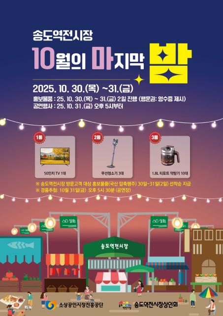 송도역전시장이 10월 31일 ‘10월의 마지막 밤 축제’ 공연 및 경품 추첨 행사를 개최한다