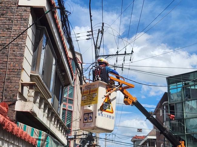 주요 점검 사항은 ▲노후 공중선 끊어짐·벗겨짐 여부 확인 ▲전선 끊어짐·늘어짐으로 인한 차량·보행 안전 방해 요소 제거 ▲전선 과적(過積)으로 인한 전신주 기울어짐 복구 등이다.