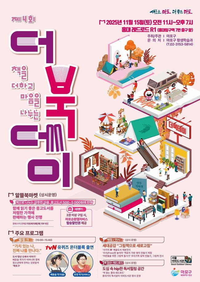 마포구(구청장 박강수)는 오는 11월 15일(토) 오전 11시부터 오후 7시까지 레드로드 R1 일대에서 '제4회 더북데이' 행사를 개최한다.