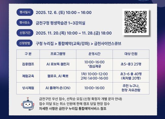 금천구, 'AI 로봇 캠프' 참여자 모집