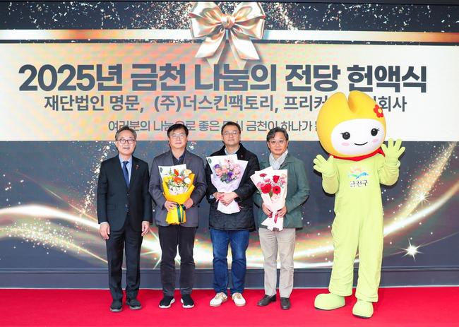 이날 금천구청 1층 '나눔의 전당'에는 지역사회 기부 문화 확산에 기여한 ▲ 재단법인 명문 ▲ ㈜더스킨팩토리 ▲ 프리커스 주식회사 총 3곳이 신규로 등재됐다.
