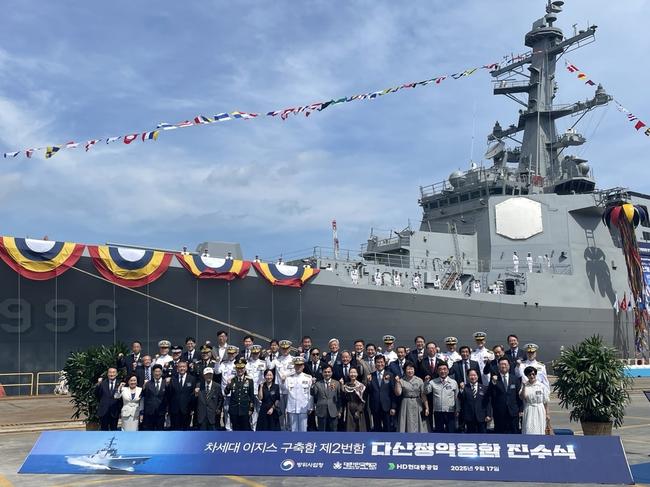 주광덕 남양주시장은 17일 울산 HD현대중공업 조선소에서 열린 차세대 이지스 구축함 '다산정약용함' 진수식에 참석했다. '다산정약용함'은 정조대왕급(KDX-Ⅲ Batch-Ⅱ) 2번함으로, 첨단 전투체계를 갖춘 대형 해군 구축함이다.