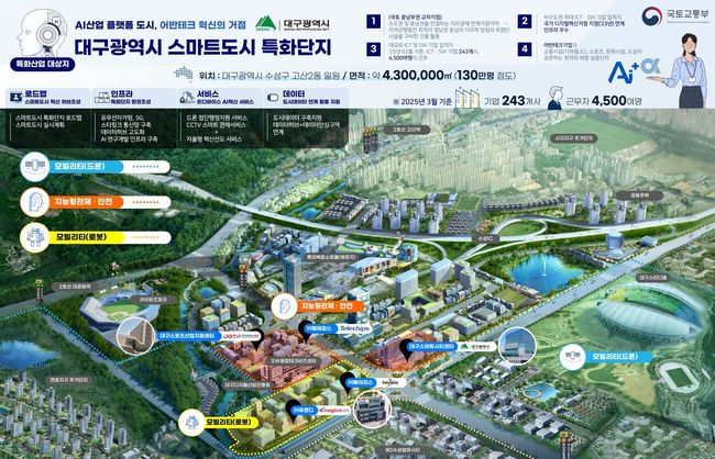 국토교통부는 이날 대구광역시, 경기 안양시, 경기 부천시, 경기 수원시 등 4개 대도시와 서울 성동구, 구로구, 강남구, 전남 여수시, 서울 은평구 등 5개 중소도시가 올해 스마트도시 신규 인증을 받았다고 밝혔다.