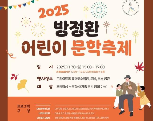 구리문화재단이 오는 11월 30일 구리아트홀에서 소파 방정환 선생의 아동 존중 정신을 기리고 어린이들이 문학을 쉽게 즐길 수 있도록 기획한 ‘2025 방정환 어린이 문학 축제’를 개최한다고 밝혔다.