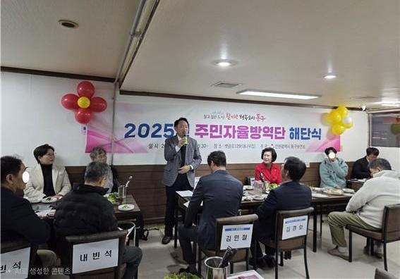 인천 동구(구청장 김찬진)는 지난 25일 말라리아 등 매개모기 감염병 예방을 위해 방역소독 활동을 수행한 '동구 주민자율방역단'의 활동을 마무리하는 해단식을 열었다고 밝혔다.