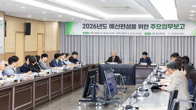 인천광역시 계양구(구청장 윤환)는 9월 16일과 17일, 이틀간 구청 영상회의실에서 전 부서가 참여하는 2026년도 예산편성 주요업무보고회를 개최했다.
