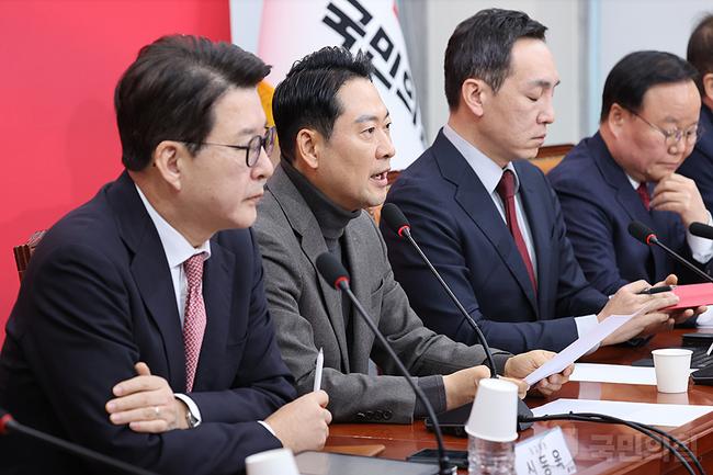 8일 오전 서울 여의도 국회 회의실에서 장동혁 당대표 주재로 최고위원회의가 열리고 있다.