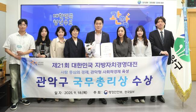 관악구(구청장 박준희)가 2025 지역경제 혁신박람회에서 개최된 '제21회 대한민국 지방자치 경영대전' 시상식에서 최우수상인 국무총리상을 수상했다.