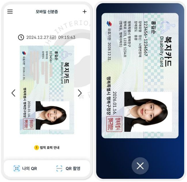 모바일 장애인등록증 이미지 예시