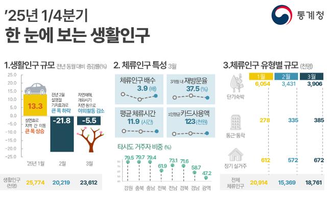 2025년 1분기 생활인구, 2월·3월 감소세에도 1월 큰 폭 증가