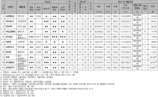 냉감패드 품질 비교 종합결과표