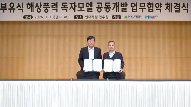 현대제철은 지난 13일 당진 현대제철 연수원에서 현대건설과 ‘부유식 해상풍력 독자모델 공동개발 업무협약(MOU)’을 체결했다고 밝혔다. 이번 협약은 해상풍력 발전용 철강재 시장 확대와 차세대 에너지 산업 대응력을 높이기 위한 협력의 일환이다.