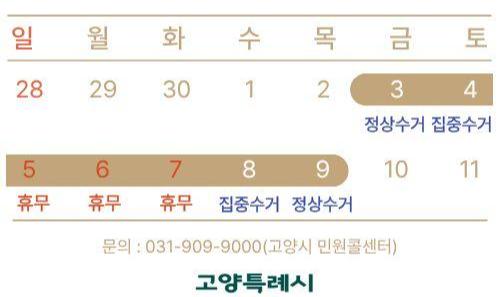 특히, 10월 8일(수) 대체공휴일에도 생활쓰레기 수거를 정상적으로 실시해 시민 불편을 최소화할 방침이다.