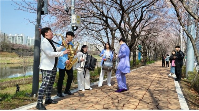 우선 안양천과 도심 광장에서 '봄따라 꽃따라 버스킹' 공연이 펼쳐진다. 4일 오후 3시 안양천 벚꽃길에서 어쿠스틱 듀오밴드 '닮은'의 공연이 열리고, 18일에는 가산 현대아울렛 광장에서 밴드 '스미어'의 공연이 개최된다.