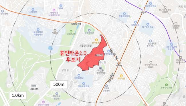 대상지는 신당동 432-24번지 일원 약 51,448㎡로, 남산 고도지구 완화 이후 서울시 공모사업인 '휴먼타운 2.0' 후보지로 선정된 지역이다. 대규모 재개발이 어려운 저층주거지를 대상으로 최대 100억 원 규모의 시비를 지원받아 주택정비와 생활기반시설 확충을 병행하는 방식으로 추진된다.