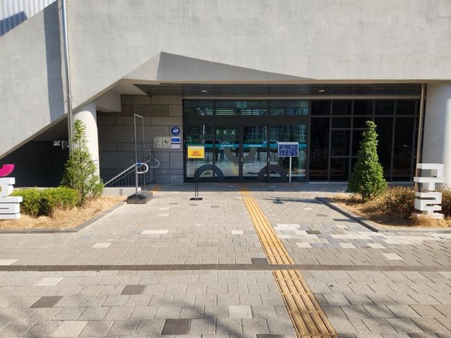 구로창의문화예술센터 주 출입구에 점자블록과 평탄한 보행 동선이 조성돼 있다.