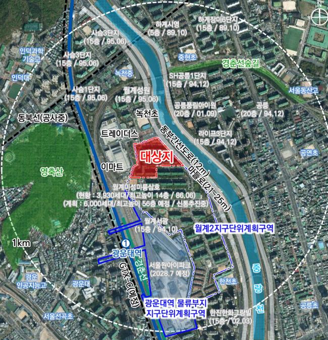 이미 착공에 들어간 광운대역세권개발 사업 부지 내 신축 아파트(서울원 아이파크 3,032세대)와 연계하면 월계동 일대에 약 1만 세대 규모의 미니 신도시급 개발이 이뤄지는 셈이다.