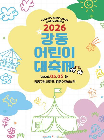 2026 강동어린이 대축제 홍보 포스터.올해로 20회를 맞은 강동어린이 대축제는 2007년 강동어린이회관 개관 이후 이어져 온 강동구의 대표 어린이 축제다. 올해는 'HAPPYGROUND GANGDONG' 슬로건 아래 영유아들이 자유롭게 즐길 수 있는 프로그램으로 꾸려졌다.