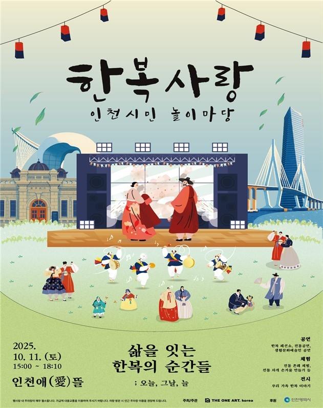 인천광역시(시장 유정복)는 10월 15일 인천시민의 날과 10월 21일 한복의 날을 맞아 오는 10월 11일 시청 인천애(愛)뜰에서 '2025년 한복사랑 인천시민 놀이마당'을 개최한다고 밝혔다.