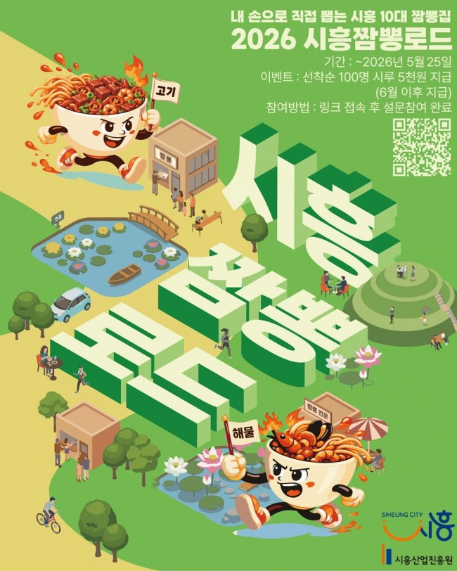 시흥시는 지역 상권 활성화와 특화 먹거리 브랜드 육성을 위해 '짬뽕로드: 시흥 10대 짬뽕' 선정을 위한 시민 설문조사를 4월 27일부터 5월 25일까지 실시한다.