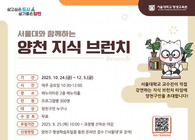 양천구, 고품격 평생학습 강좌 '양천 지식 브런치' 운영